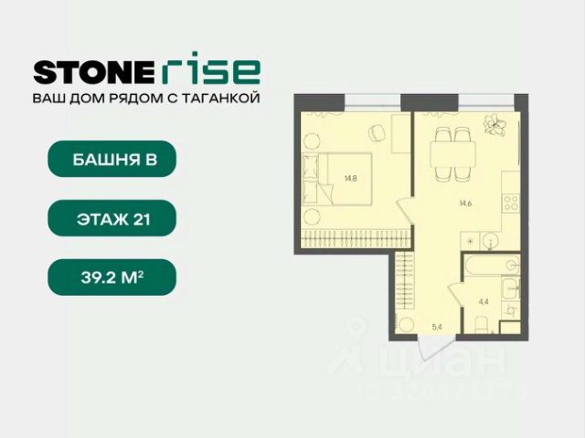 1-комн.кв. · 39,2 м² · 21/28 этаж