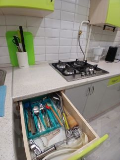 В квартире есть всё необходимое для комфортного проживания: мебель, техника, посуда, постельное бельё, сушилка для белья, пылесос, утюг, вентилятор напольный, электриче
