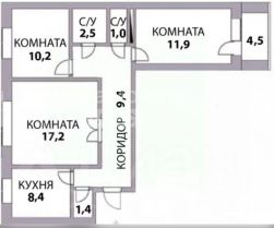 -общая площадь 63м.кв, кухня 8.5м.кв., БК 17м.кв., спальни 10 и 12м.кв.