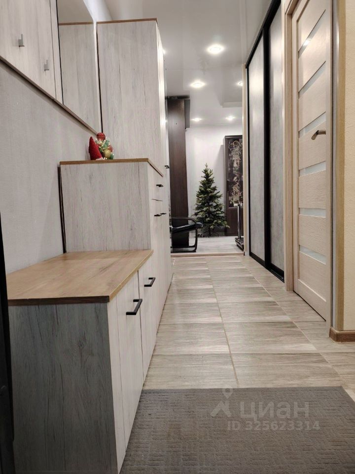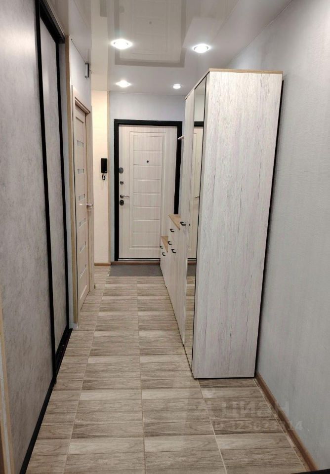 Во всей квартире натяжные потолки, много света, в прихожей — встроенный шкаф.