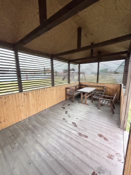 Имеются колодец с технической водой, детская игровая зона, беседка с мебелью из дерева, хозяйственный блок и туалет.