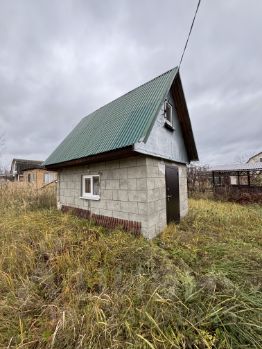На участке находится блочный домик размером 3 на 6 метров. 30 кв.м . Внутренняя отделка выполнена вагонкой.
